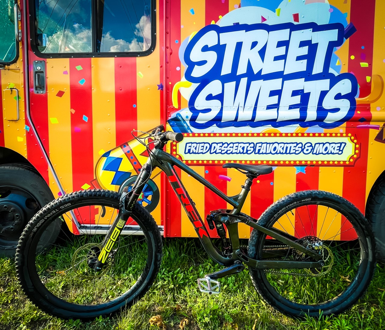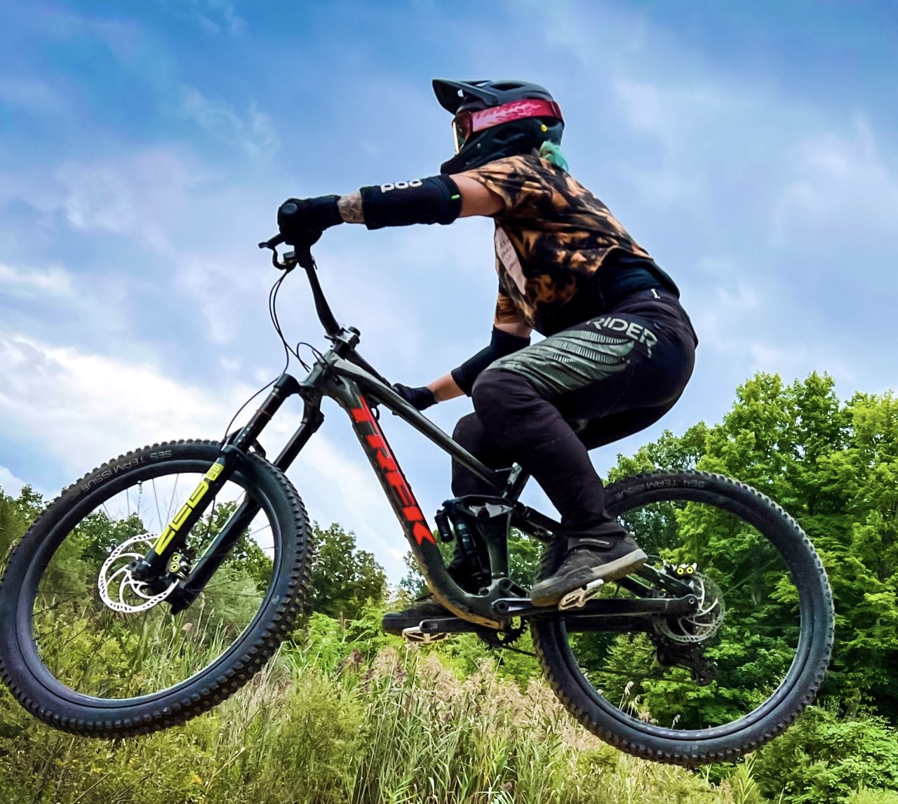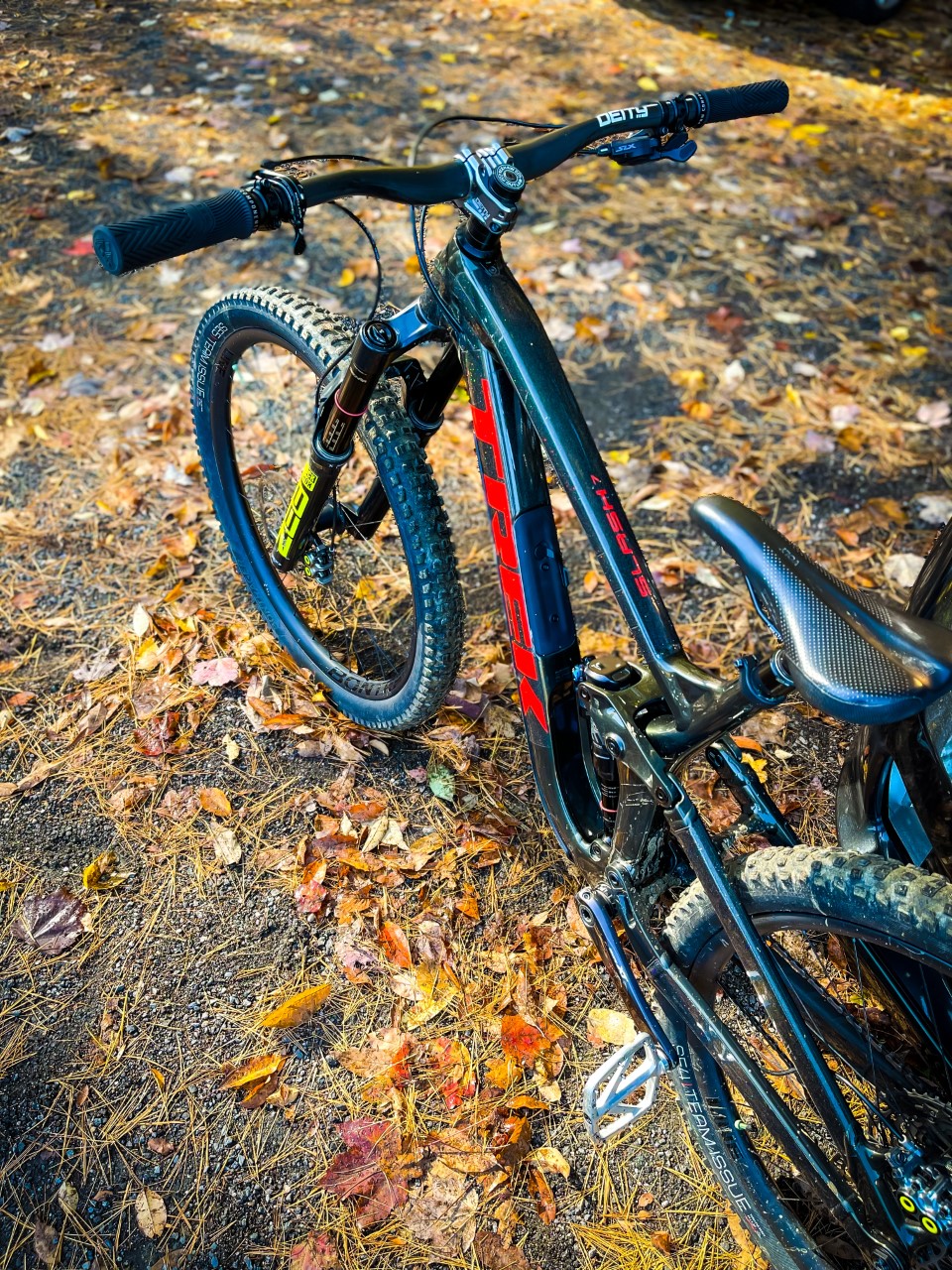 Tires: Bontrager Team issue SE5, 2.6″ front tire, and 2.4″ in rear tire
